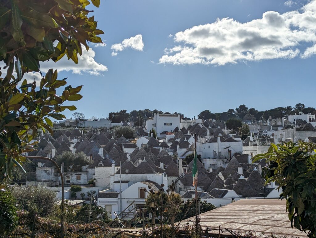 화요일에 우리는 알베로벨로에서 트룰리를 보았어요. 알베로벨로의 트룰리는 석회암으로 만들어진 원추형 구조물이에요.